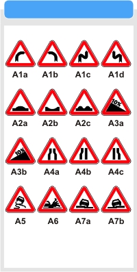 Sinais de regulamentação • Sinais de Perigo • Sinais de IndicaçãoSinais Temporários